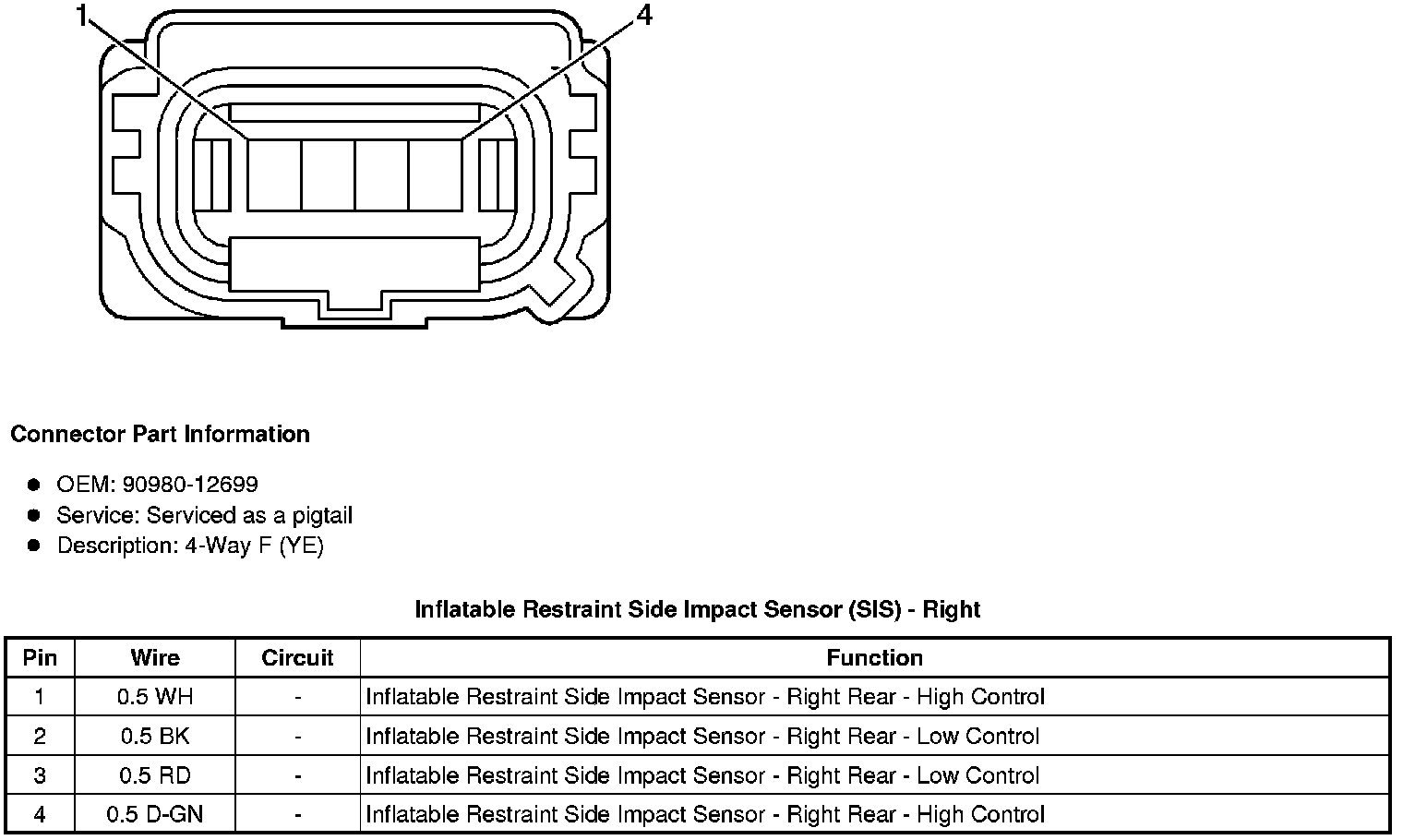 Inflatable Restraint Side Impact Sensor (SIS) - Right Rear