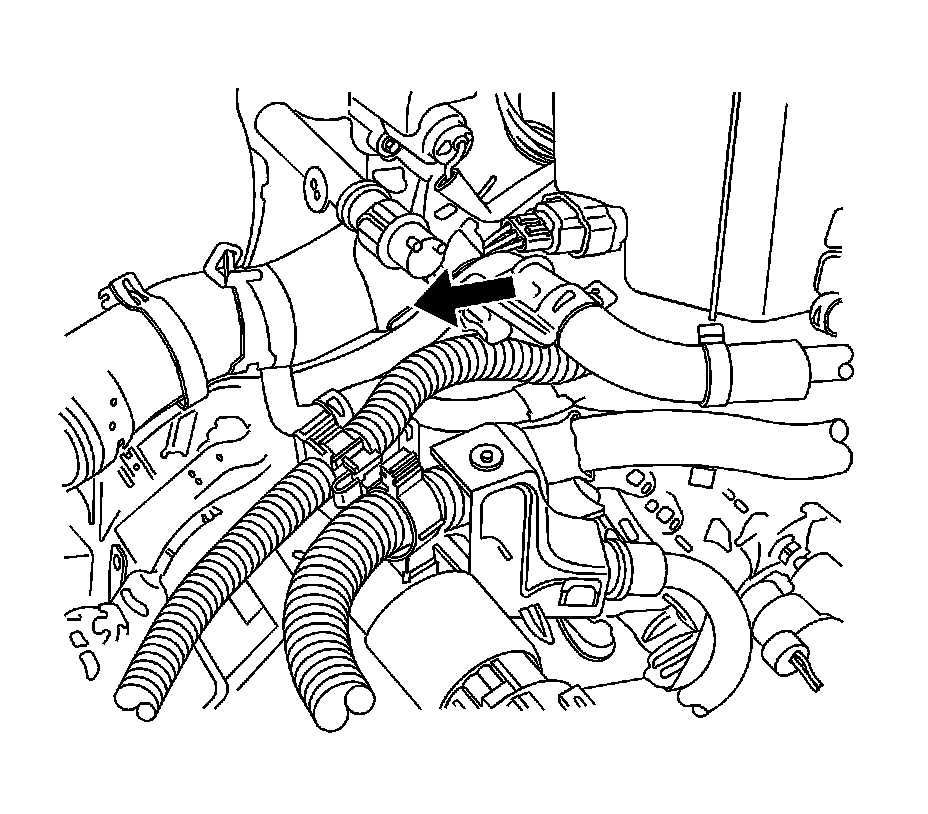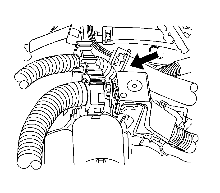 Note: Ensure the engine block heater harness clip is fully attached to the conduit of the engine harness. An audible click will be heard when fully seated.