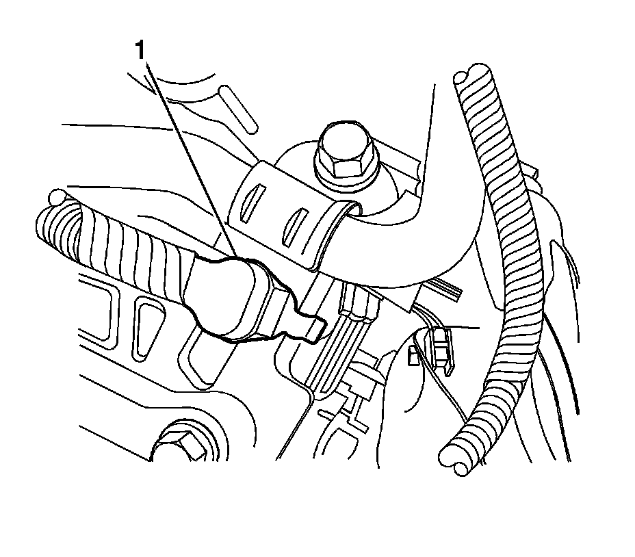 Note: Visually inspect that the engine block heater harness plug (1) is fully seated onto the element. Ensure the heating element is fully inserted into the engine block and the retaining clip is engaged. An audible click will be heard when clip is locked in position.