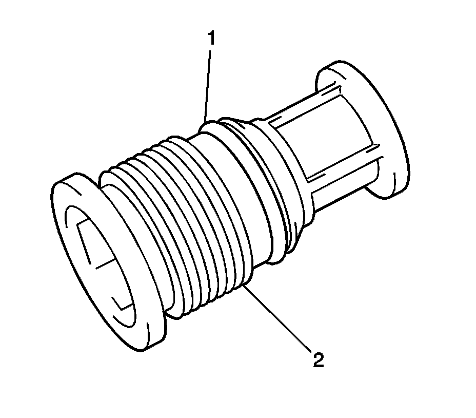 2. Install a new O-ring (1) to the receiver dehydrator cap (2) lubricated with mineral base 525 viscosity refrigerant oil.