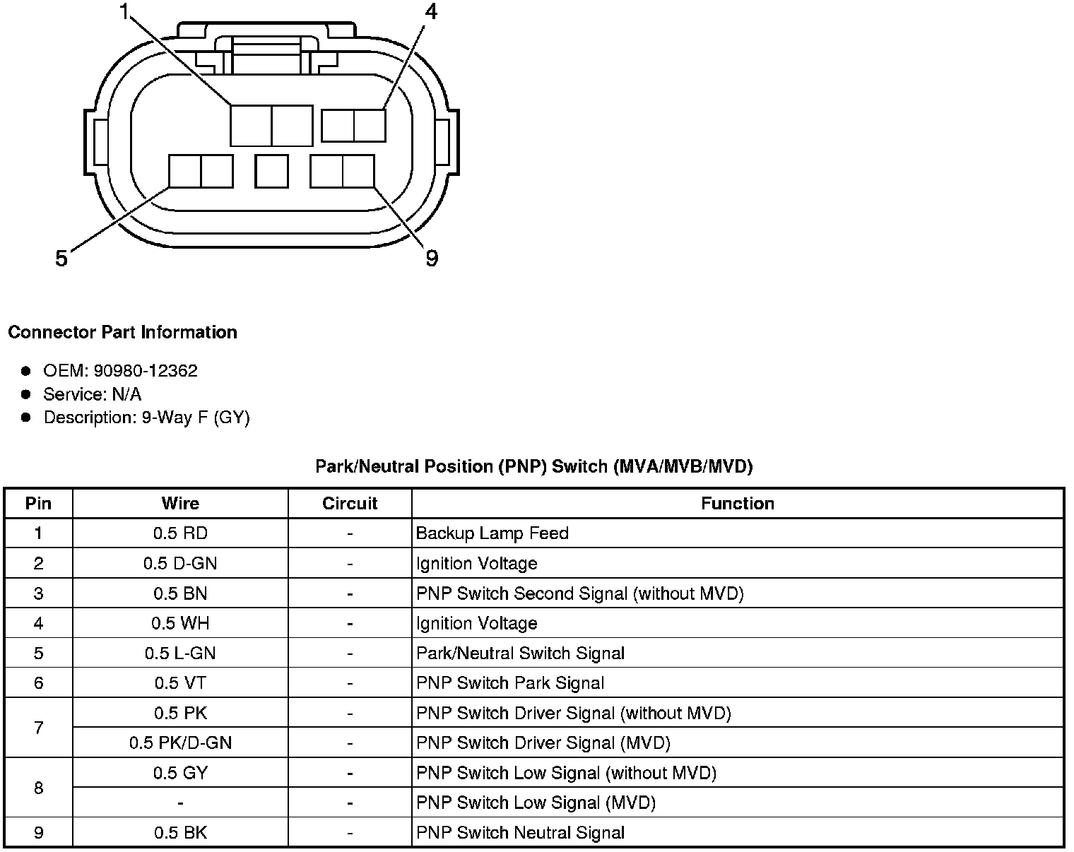 Park/Neutral Position (PNP) Switch (MVA/MVB/MVD)
