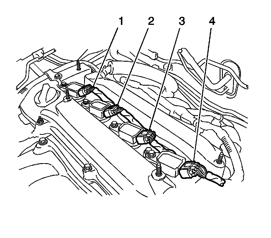 1. Remove the ignition coils (1-4). Refer to Ignition Coil Replacement (Service and Repair).