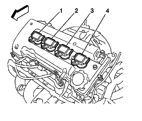 5. Remove the four ignition coils (1-4) from the cylinder head cover.