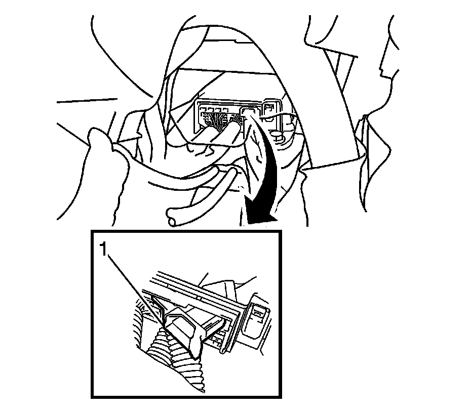 1. Install the SDM assembly (2) into the vehicle, taking care to ensure that the connectors are pointing toward the rear of the vehicle.