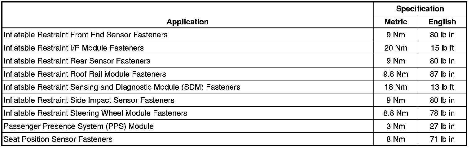 Fastener Tightening Specifications