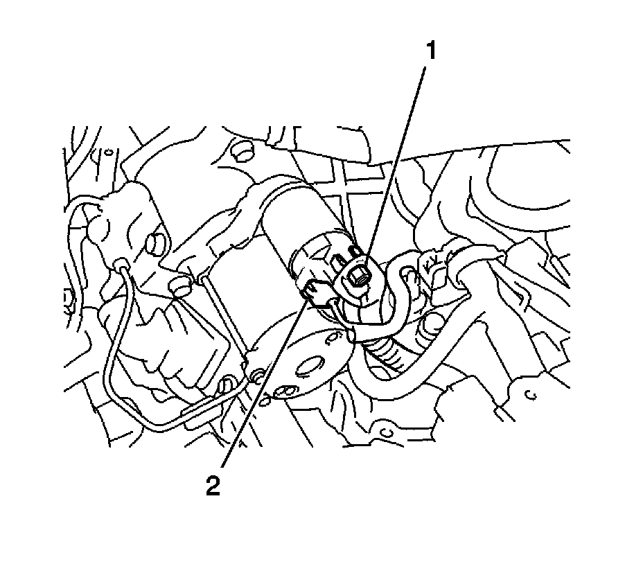 8. Disconnect the terminal 50 connector (2) from the starter assembly.