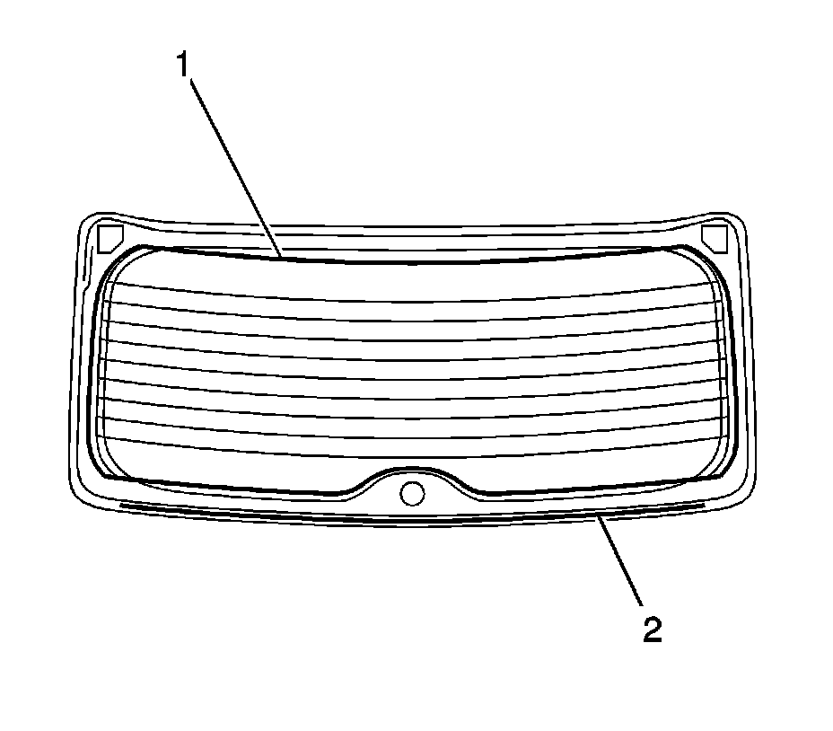 9. Remove the adhesive dam (2) from the liftgate window (1).