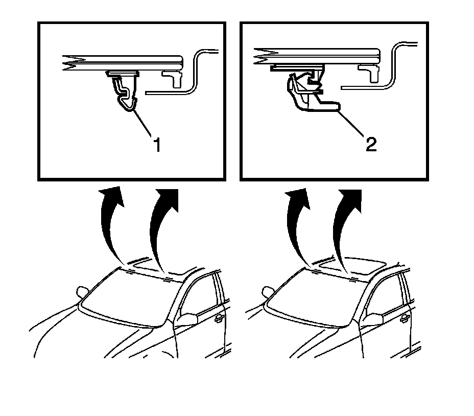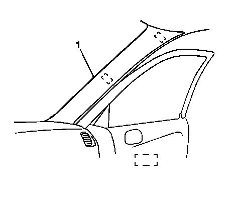 9. Install the windshield side garnish moldings (1). Refer to Windshield Pillar Garnish Molding Replacement (Without Roof Side Rail Restraint) (Windshield Pillar Garnish Molding Replacement (Without Roof Side Rail Restraint))Windshield Pillar Garnish Molding Replacement (With Roof Side Rail Restraint) (Windshield Pillar Garnish Molding Replacement (With Roof Side Rail Restraint)).