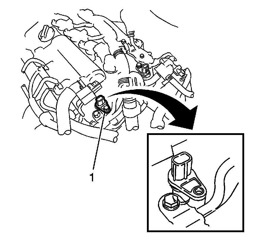 2. Install the camshaft position sensor (1) with the bolt and tighten to 10 Nm (7 lb ft).