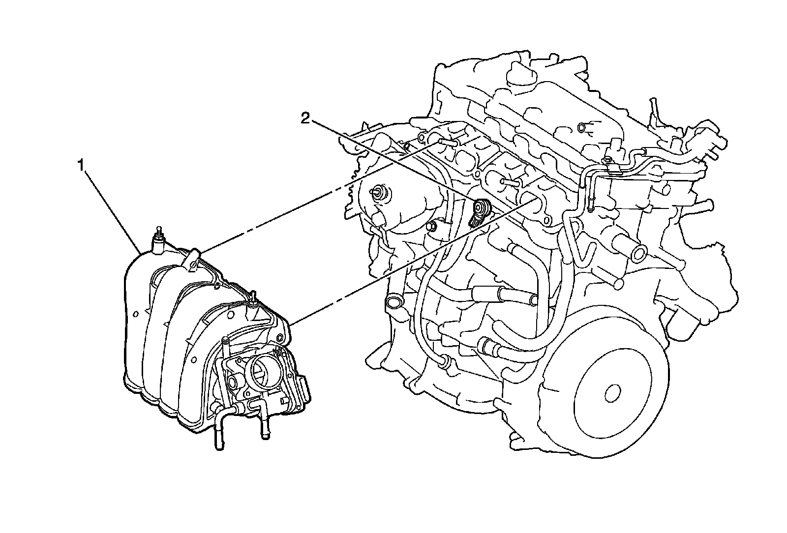The 1.8L engine is equipped with a knock sensor (KS) (2) that is located on the engine block behind the intake manifold (1). Ignition timing determines the relationship between the time the spark plug is fired and the time that the piston reaches the end of the pistons upward travel in the cylinder (TDC). If the spark plug ignites the compressed air/fuel mixture too late, not all of the air/fuel mixture has time to burn while the fuel is highly compressed. Late ignition causes a decrease in fuel efficiency, decreased power, and increased exhaust emissions. If the spark plug fires too soon, too much of the air/fuel mixture starts burning before the piston reaches the top of the compression stroke. Early ignition of the air/fuel mixture causes detonation, commonly referred to as spark knock. Constant spark knock in the motor is undesirable. Excessive spark knock can reduce engine performance. If severe enough, detonation can cause engine damage.