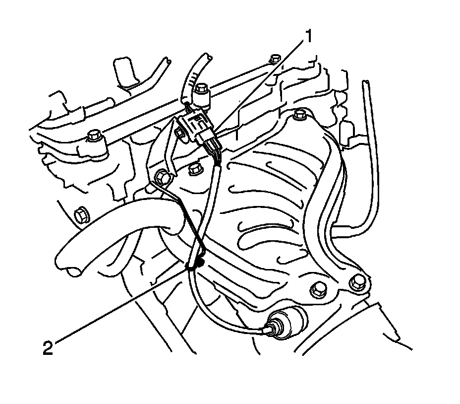 4. Disconnect the air fuel ratio sensor connector (1) and clamp (2).