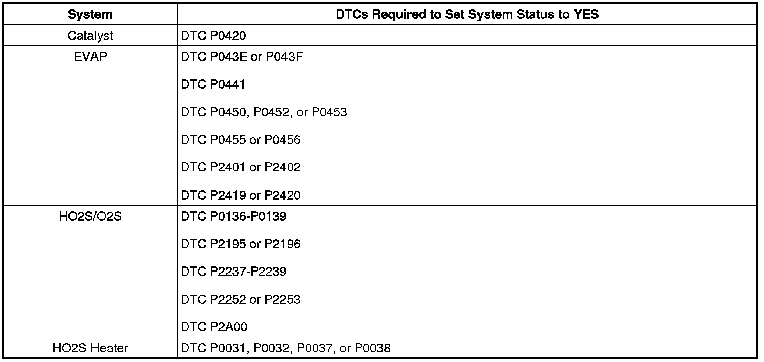Inspection/Maintenance System DTC Table