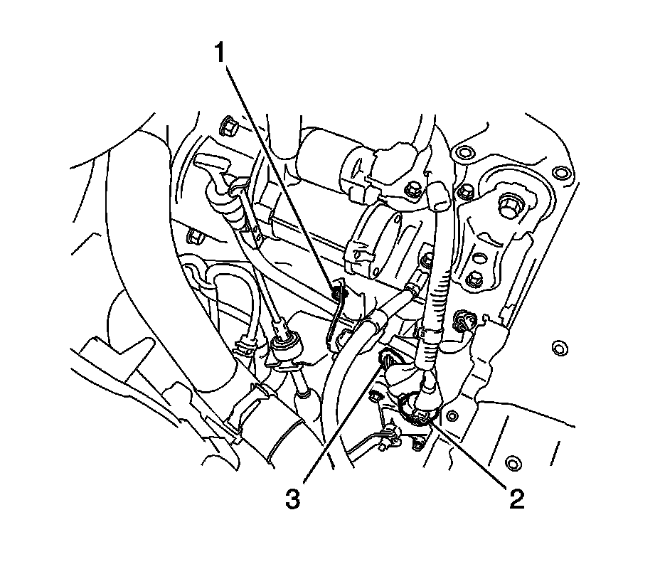 5. Disconnect the transmission wire connector, park/neutral position switch connector (2) and wire harness clamps.