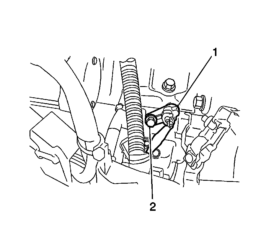 9. Connect the transmission wire connector, park/neutral position switch connector (2) and wire harness clamps.
