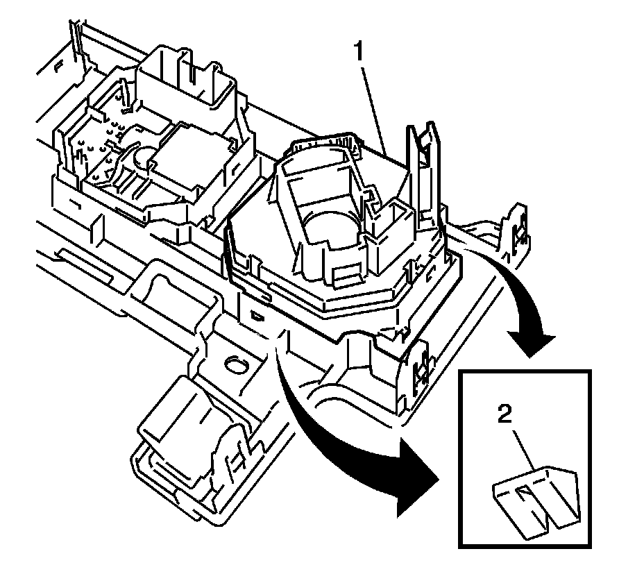 8. Disengage the two clips (2) and remove the mode control switch (1), if necessary.
