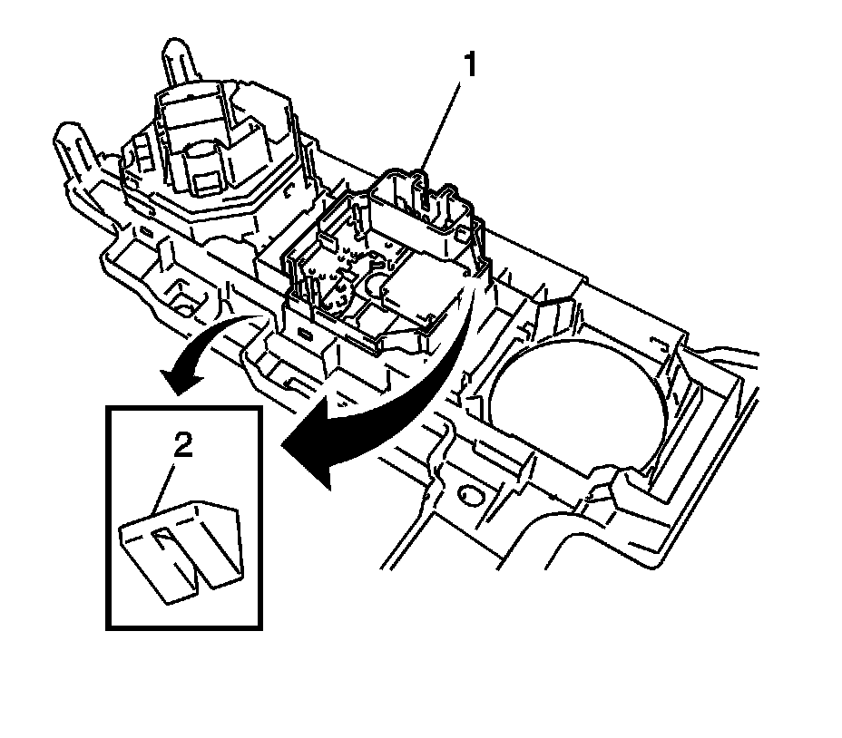 10. Disengage the two clips (2) and remove the blower/rear defogger switch (1), if necessary.