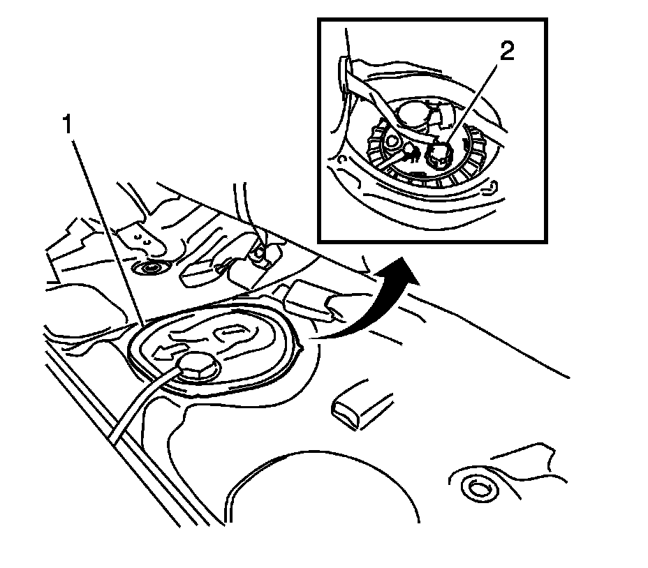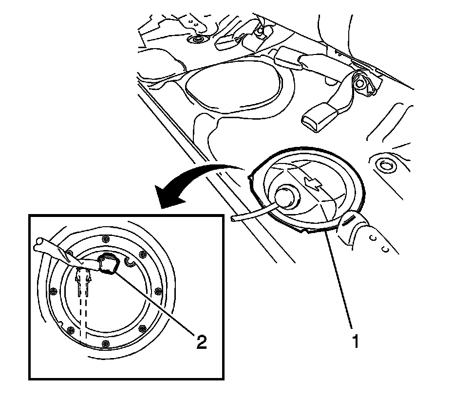2. Remove the rear floor service hole cover (1).