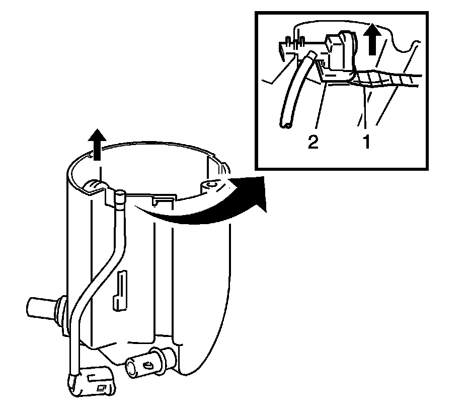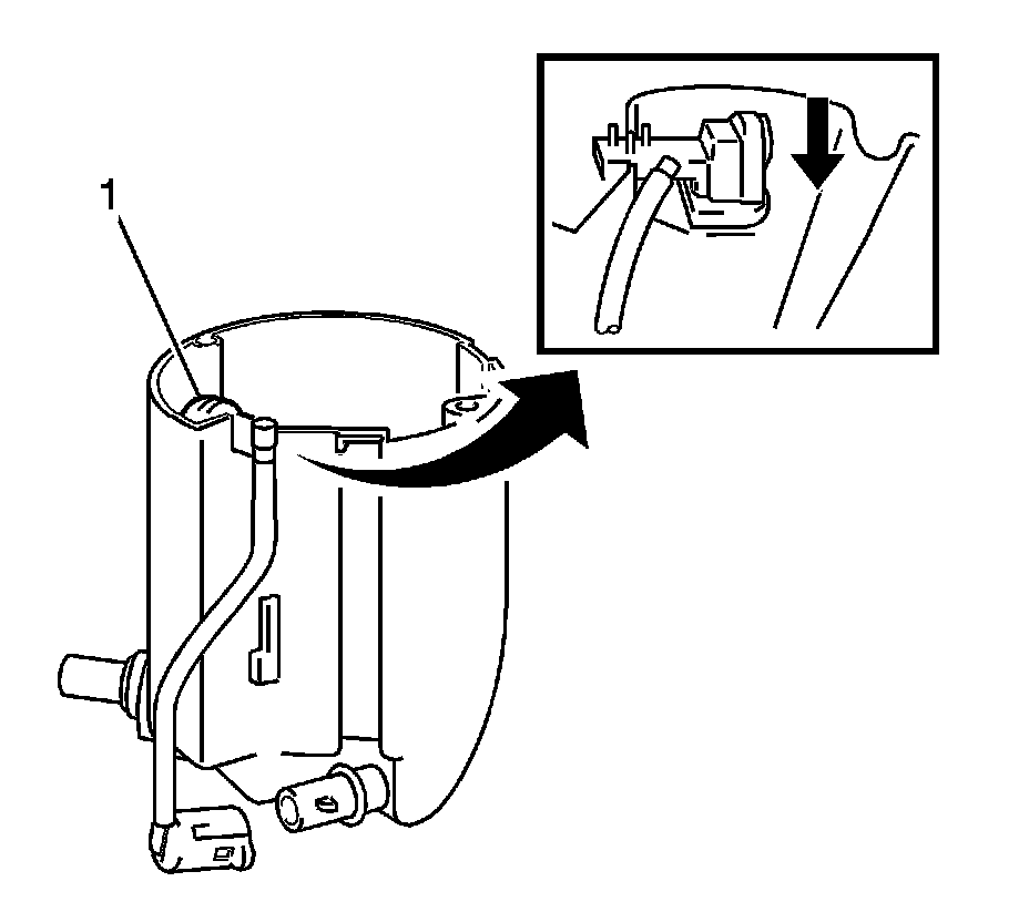 1. Release the claw and disconnect the fuel pump filter hose (1).