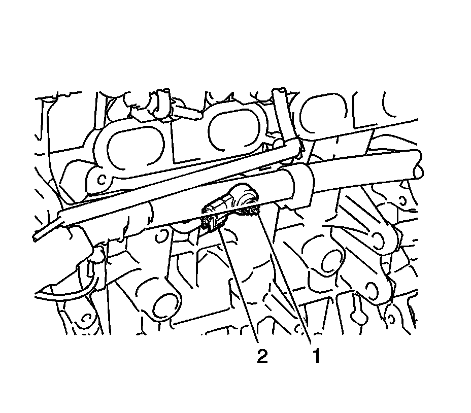 1. Install the knock sensor (2) with the nut and tighten to 20 Nm (15 lb ft).