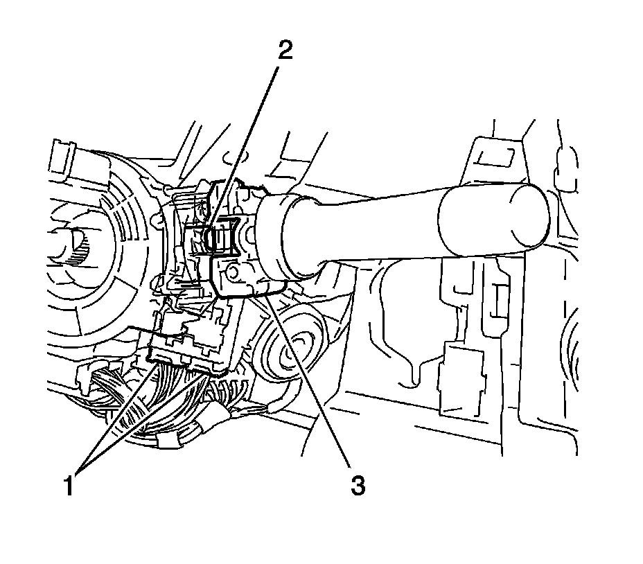 1. Engage the claw (2) and install the windshield wiper switch (3) to the steering column.