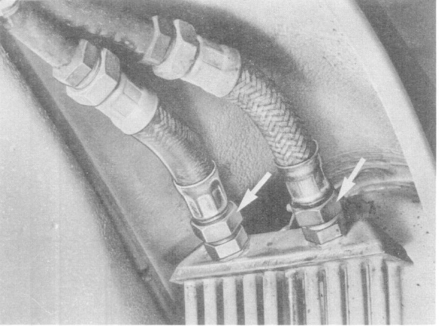 3. Check connections for leaks. This requires that the regulator for the front oil cooler he open to have oil flowing through the cooler (engine oil temperature above 83° C/181° F).