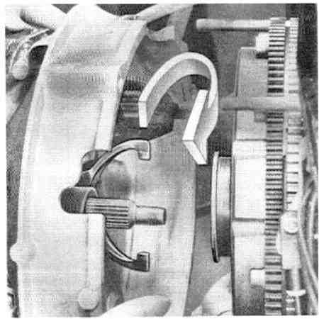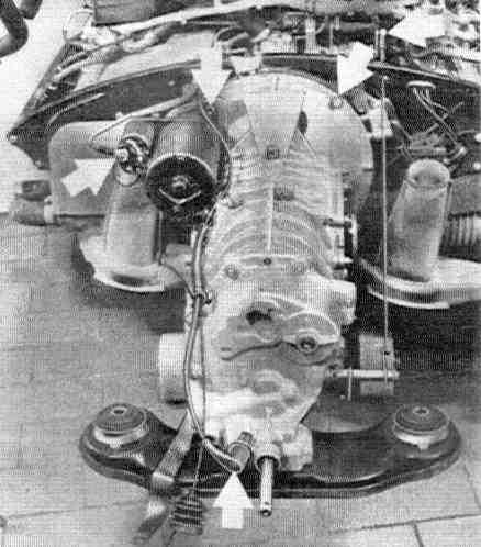 b) Unscrew 4 mounting nuts and take transmission off of engine.