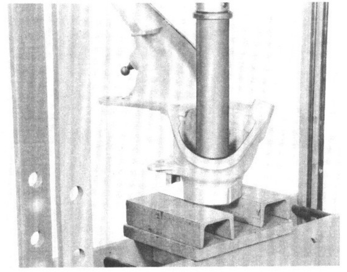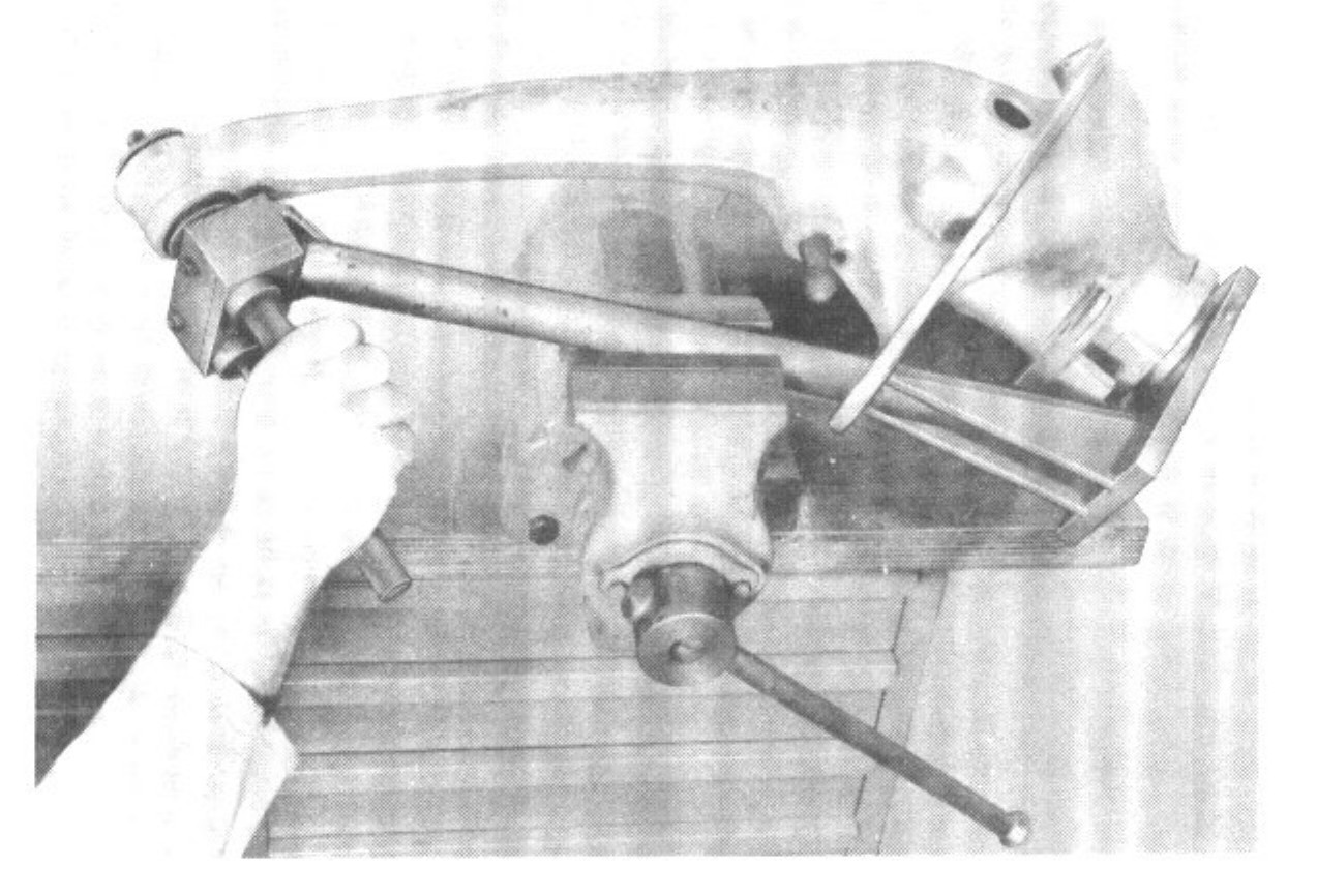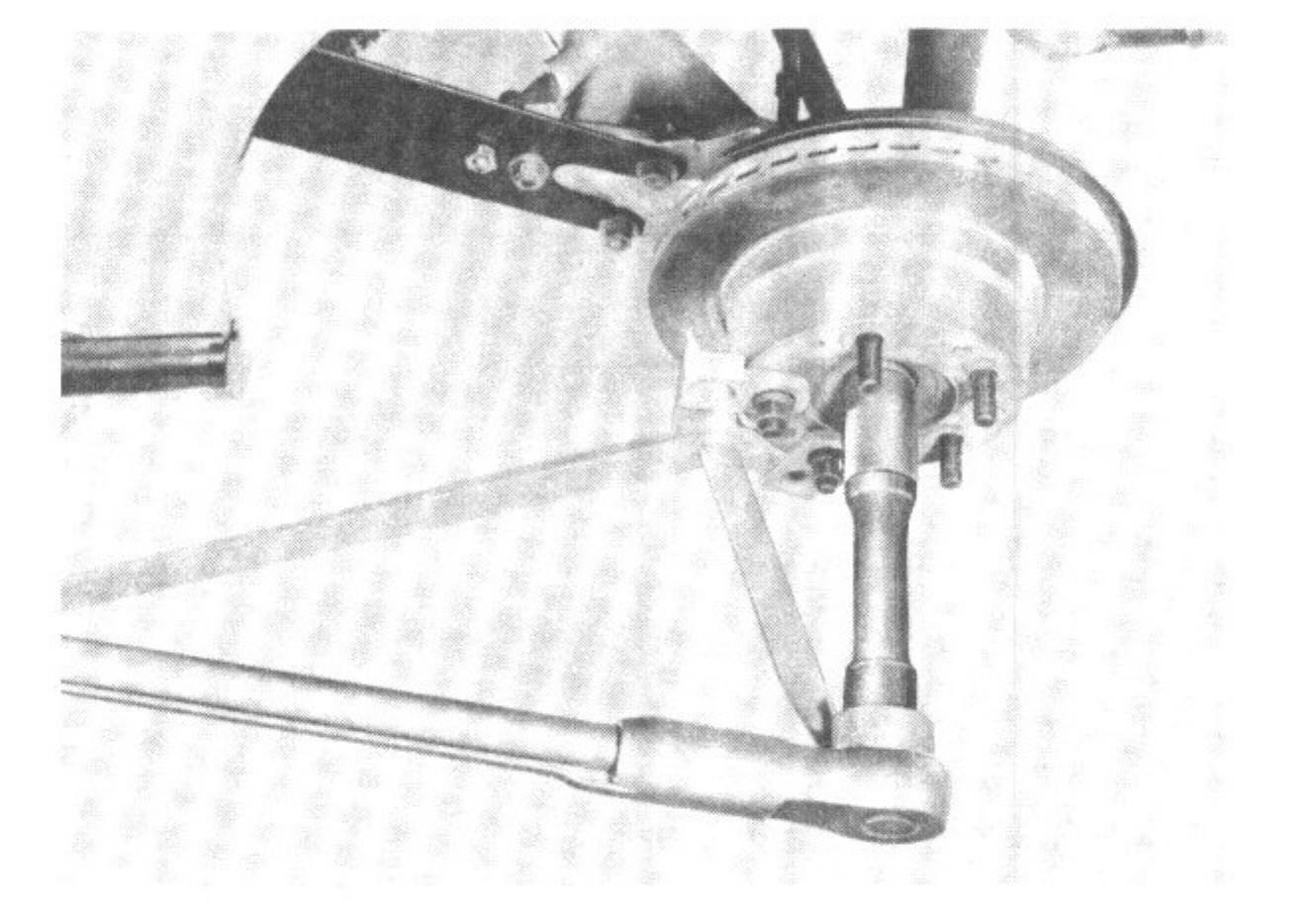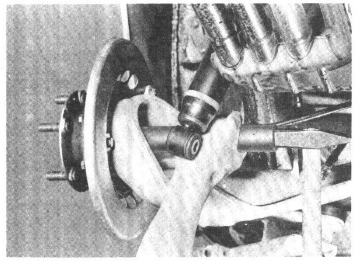 If the control arm is in alignment, it will be possible to push the test mandrel in with the rubber mounts installed. Deformed axle control arms must be replaced.