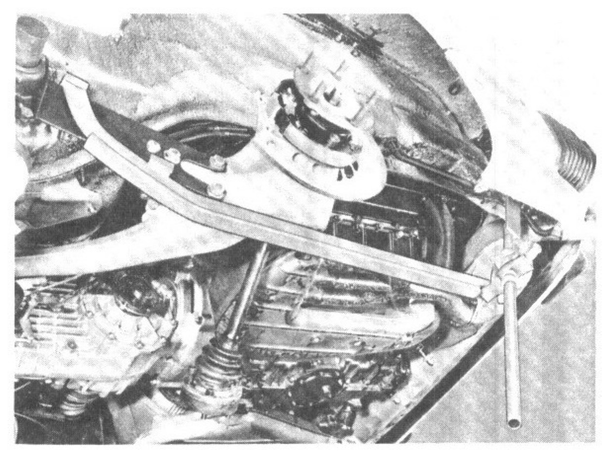 8. Remove cotter pin and castellated nut from brake cable stub. Pull brake cable out towards vehicle center.