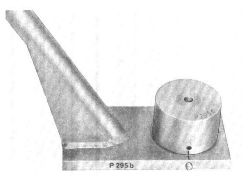 2. Install special tool P 295c (adapter for mounting aluminum axle control arm) in special tool P 295b. Marker in the P 295c adapter must point towards the marker in P 295b.