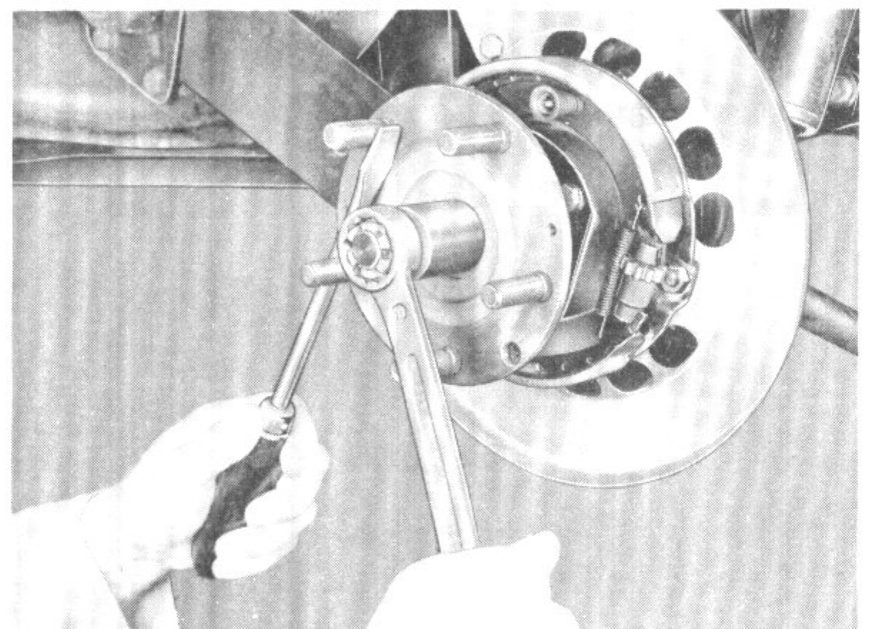 3. Remove cotter pin from the castellated nut in the wheel shaft and remove nut with the aid of P42a, P36b P44a, and P296.