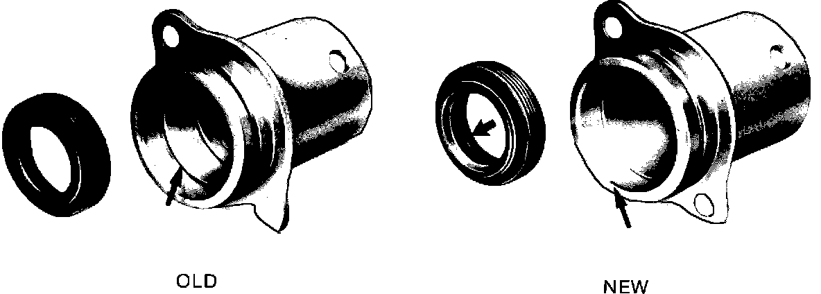 The new seal has an additional dust lip (arrow) and its location in the guide tube has been moved 10 mm to assure proper alignment with the shaft.