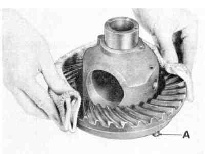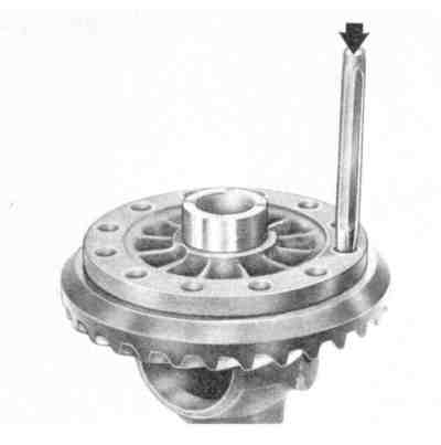 - Insert small differential gears between large differential gears and turn until bores of gears are aligned with bores in case.