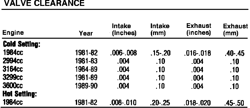 Valve Clearance Specifications: