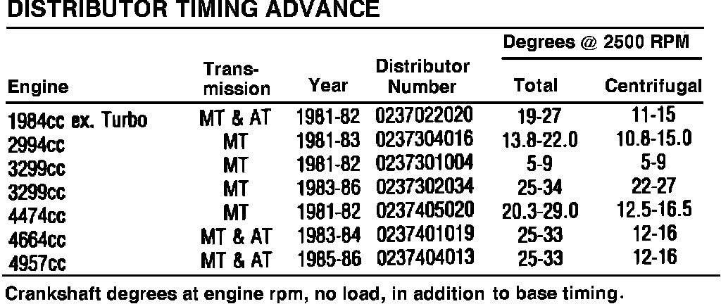 Distributor Timing Advance Specifications: