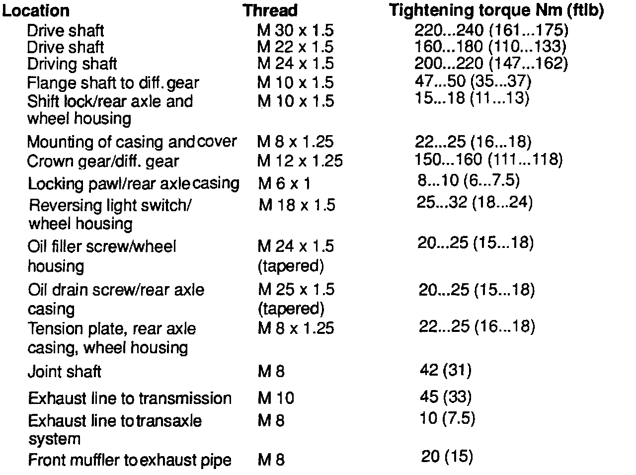 Tightening Specifications