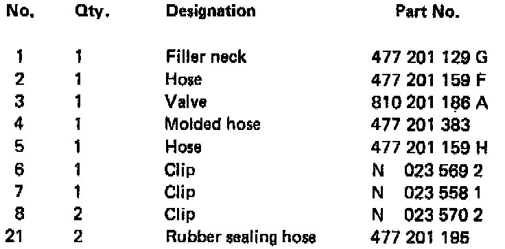 Previous-type filler necks (for model 1980 and 1981), Part Number 477 201129 E, is no longer available as service part.