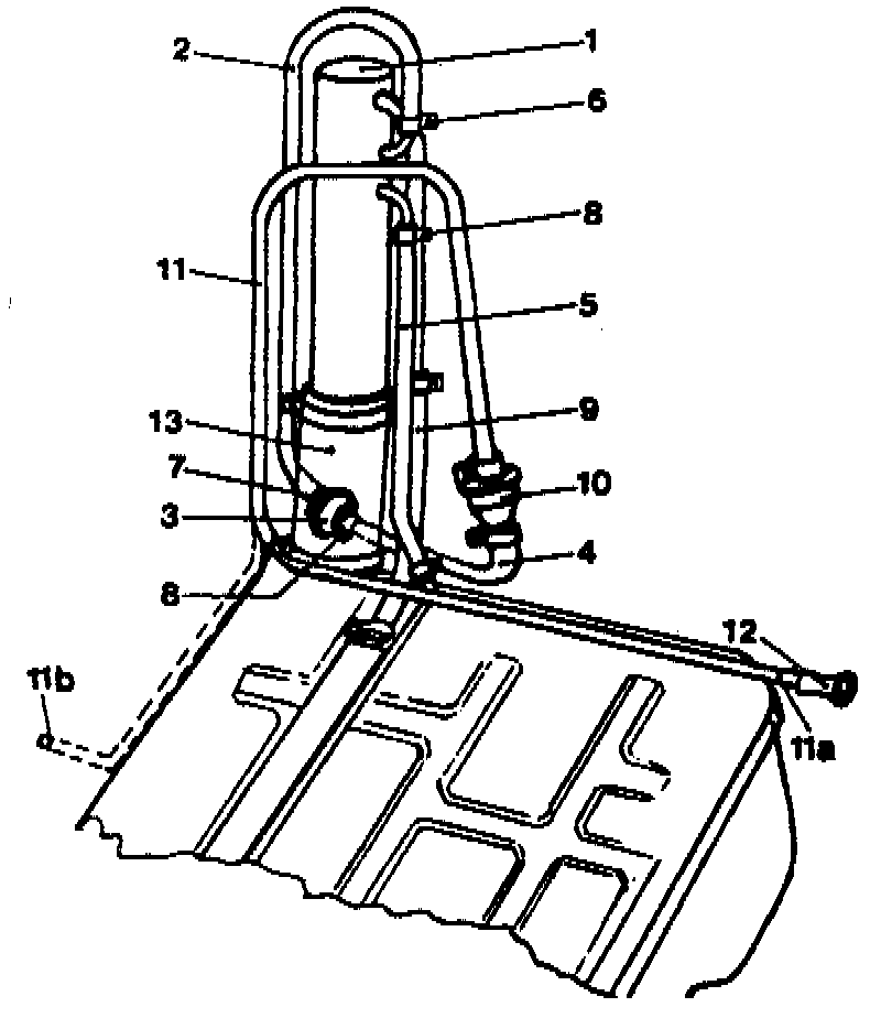 ^ molded hose (Item 2 in illustration) with pressure valve (Item 3 in illustration) and hose elbow (Item 4 in illustration) must be fitted on the curved upward leading pipe on the filler neck.