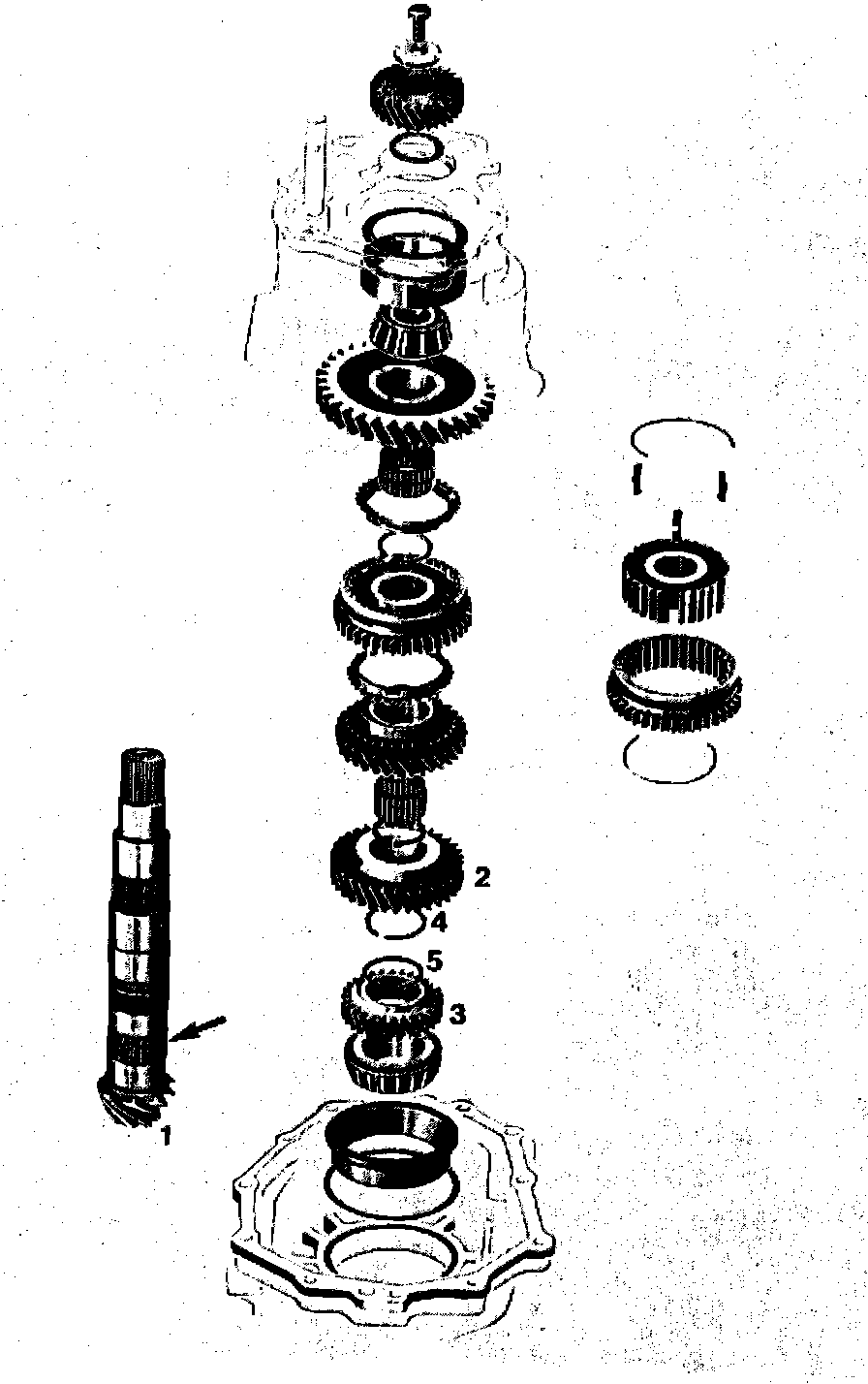 As a spare part, the ring gear and pinion set, Part No. 016.409.143S is available for all 5- speed transmissions. On this pinion, the 4th gear is secured by splines and the 3rd gear by a press fit, but, with a different diameter.