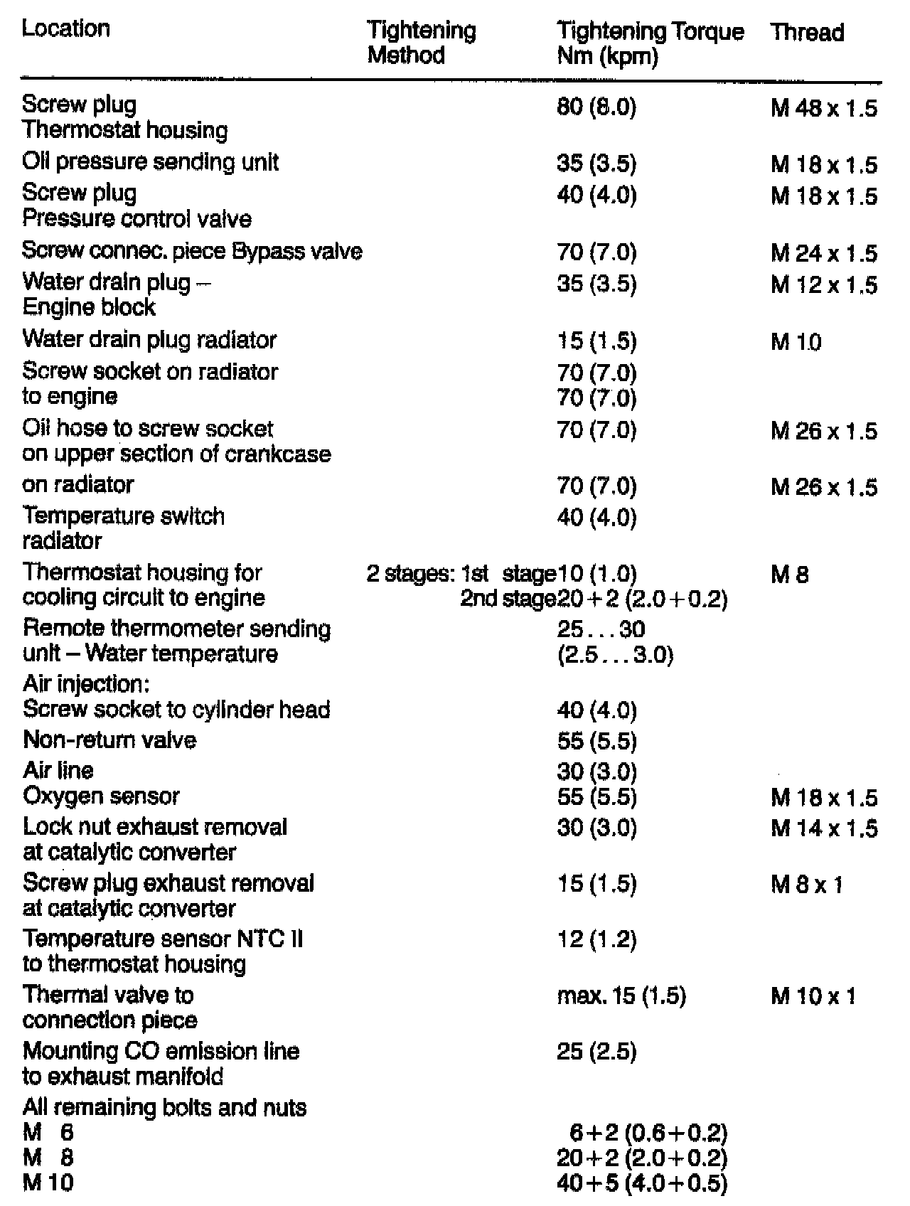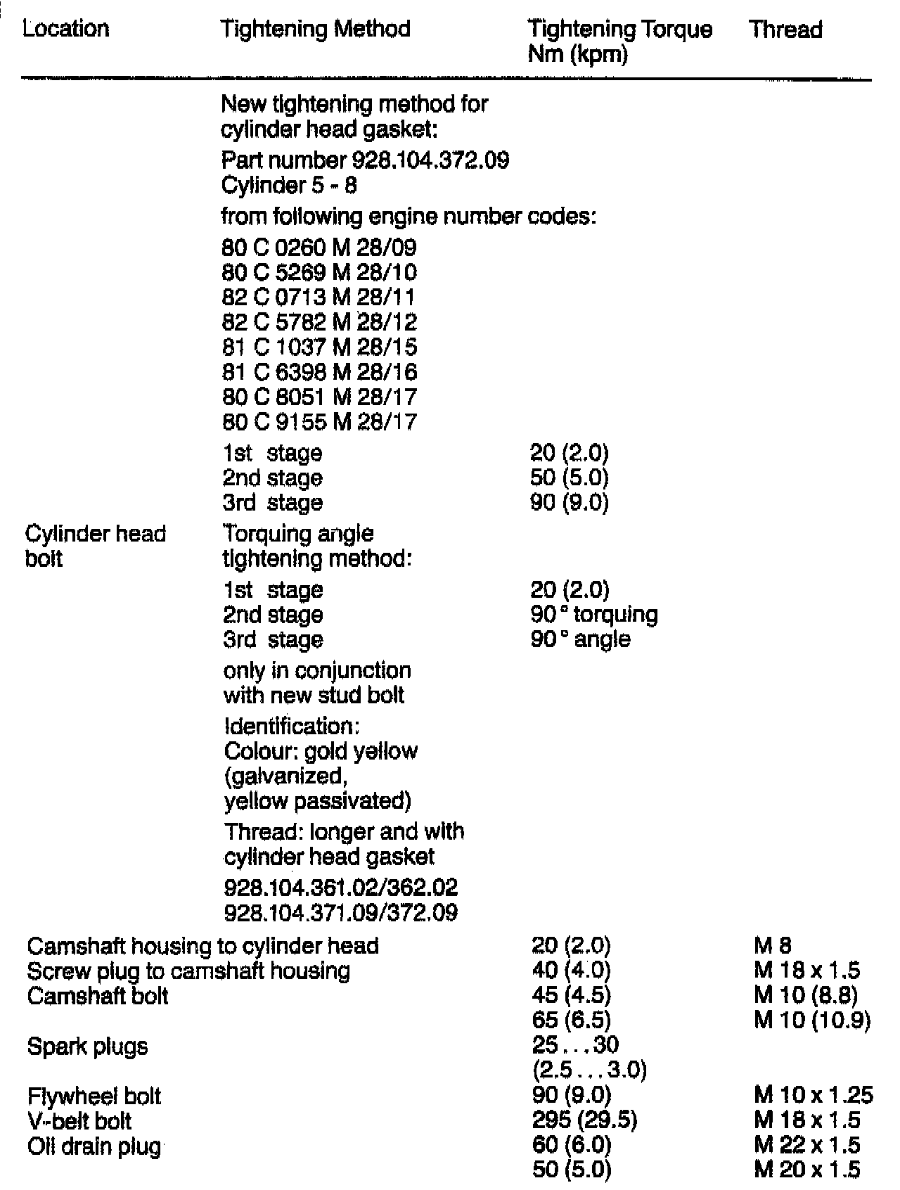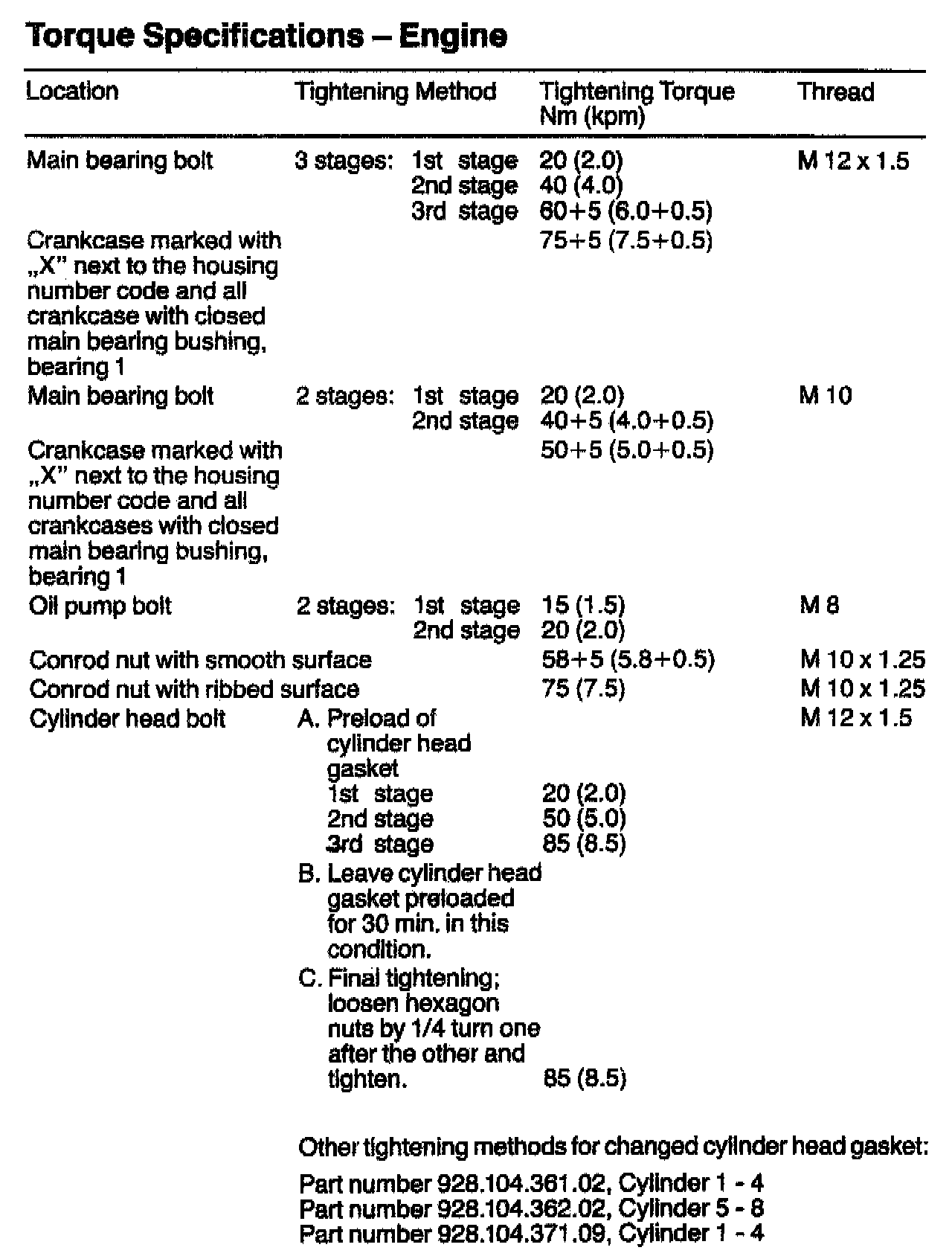 TIGHTENING SPECIFICATIONS