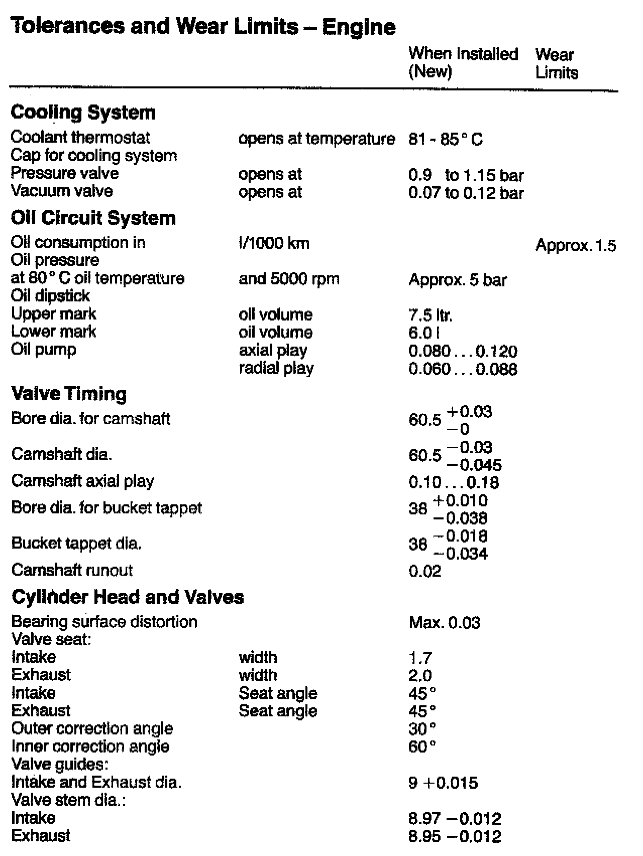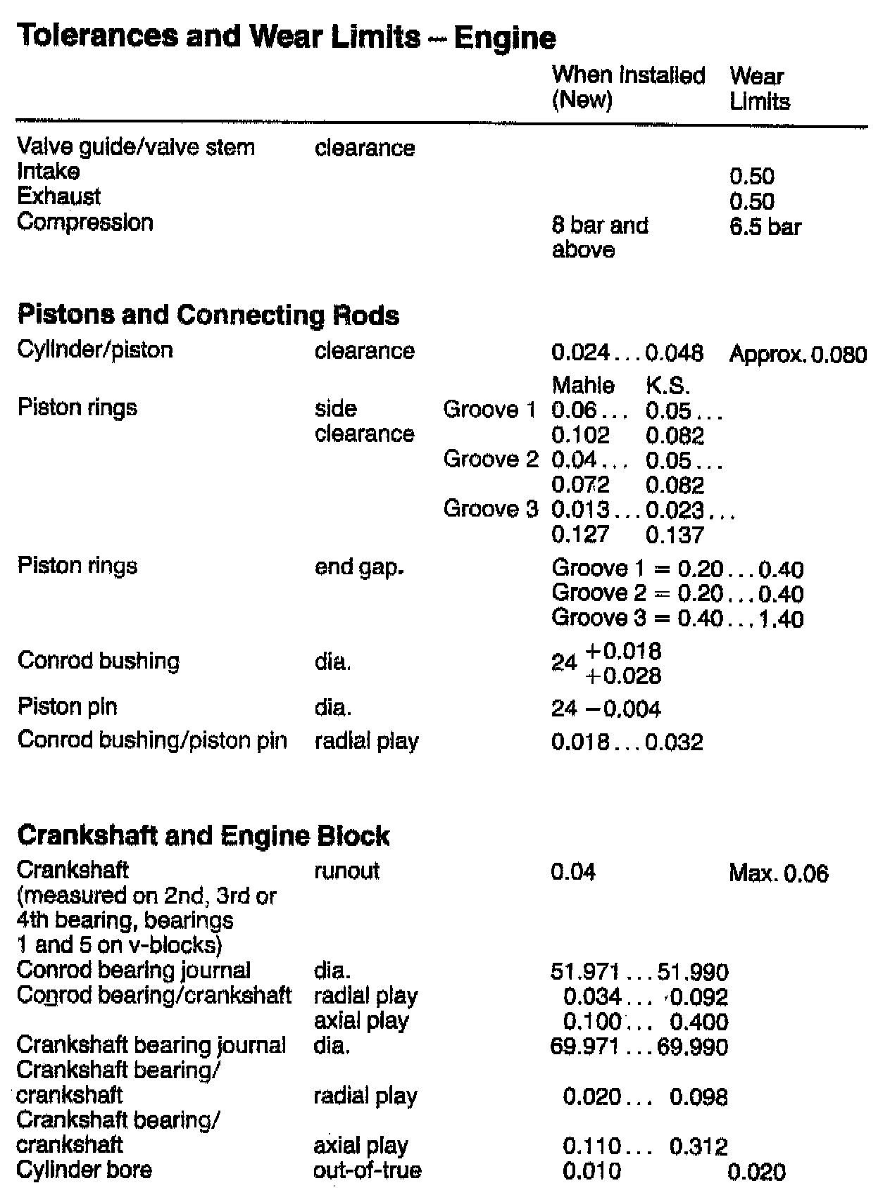 TOLERANCES AND WEAR LIMITS