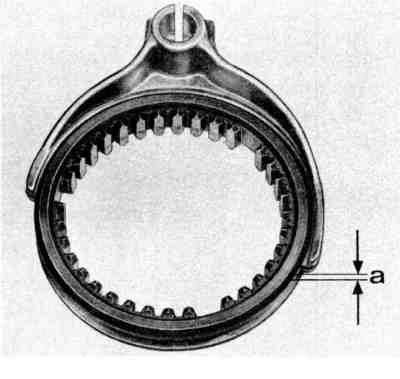 - Maximum clearance between selector fork and shifting sleeve of 1st through 5th speed.