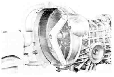 - Block input shaft with special tool P 37a, and engage 5th gear.