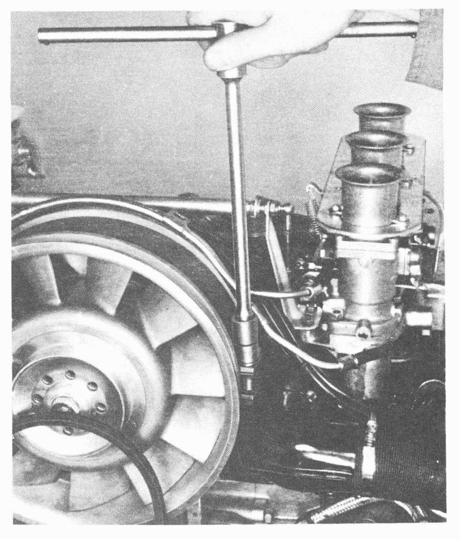 3. Remove alternator pulley retaining nut (hold with special tool P 208) and take off the V-belt.