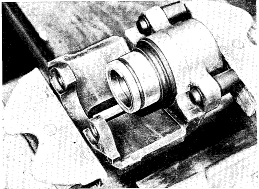 2. Remove housing, take outer brake pad off of holder. pull inner brake pad out of piston.
