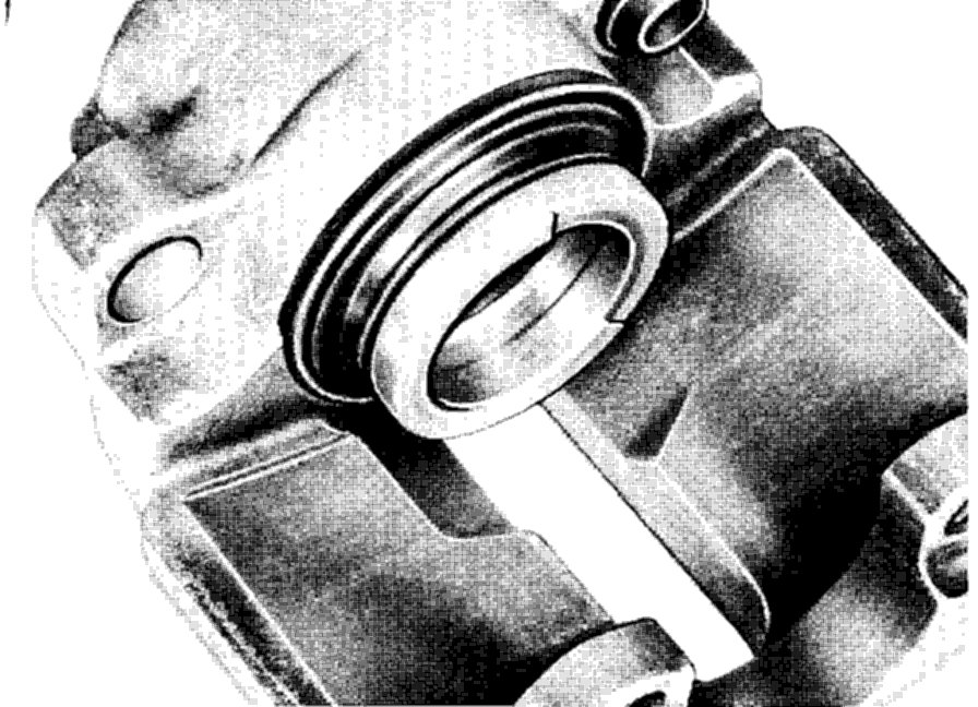 7. Press sealing lip of dust cover into housing groove with piston in approximately correct position (20° set back surface). Make sure that seal fits properly around its entire periphery.