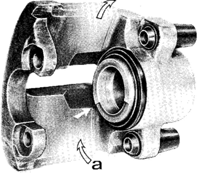 NOTE: A reference point is the edge on bottom of housing (see arrow). Arrow a=brake disc inlet side.