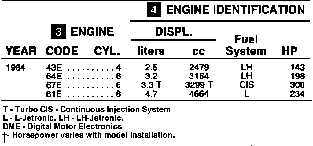 To identify an engine by the manufacturer's code, follow the four steps designated by the numbered blocks.