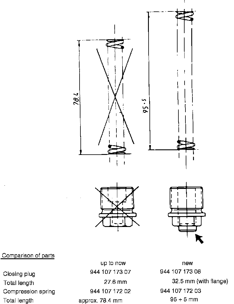 In case of engine repairs or low oil pressure, the modified spring and closing plug can be installed in all previous engines