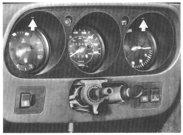 12. Press off radio speaker mask and remove speakers in cars before 1983 models. Remove instrument panel at center.