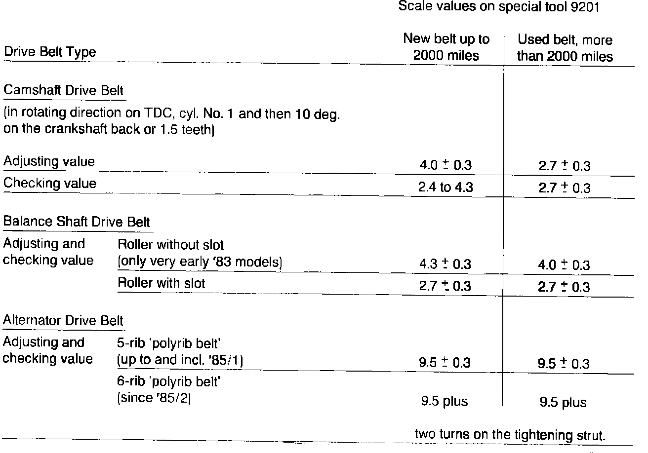 Engine - Drive Belt Checking and Adjusting Values